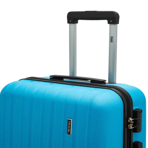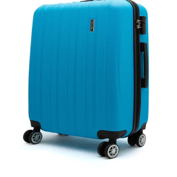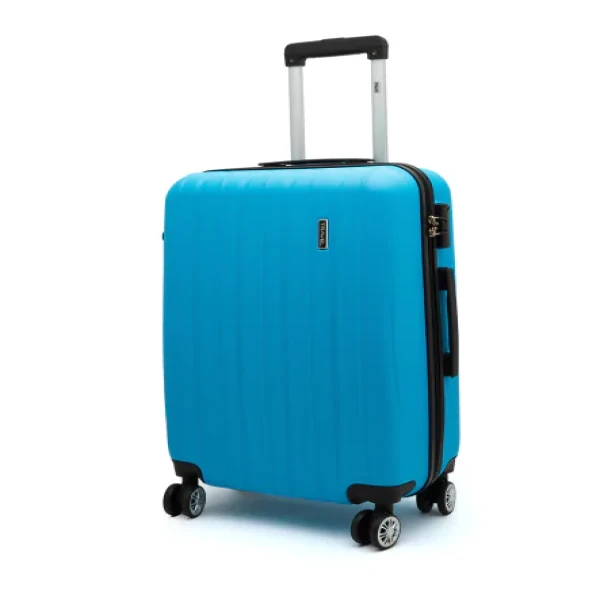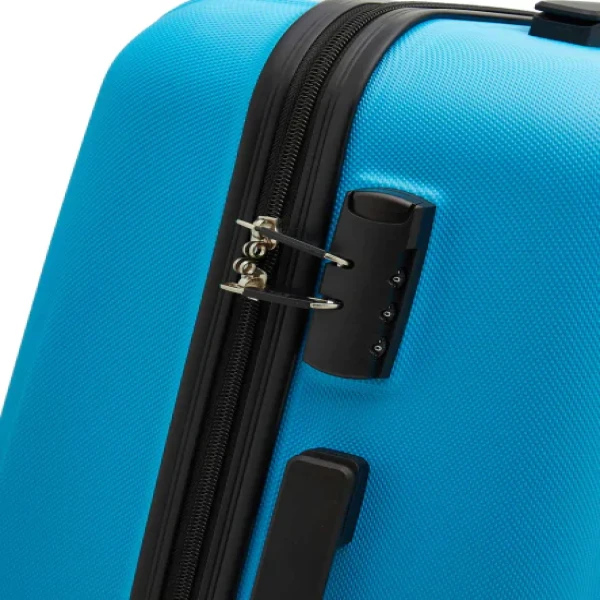 Carry all your belongings in style and with ease in this blue textured trolley suitcase for your next vacation. This hard case features a hard body with a retractable handle, side lock and four wheels that will make it easy to move around.