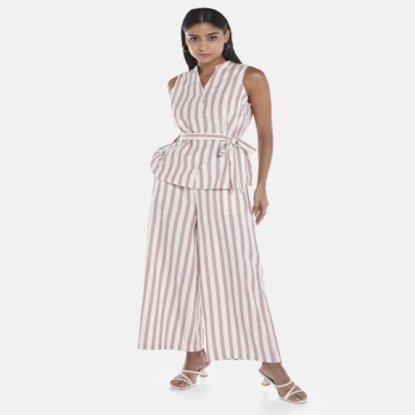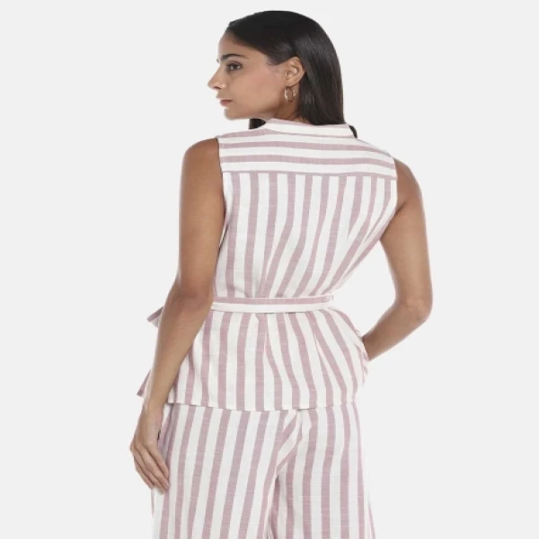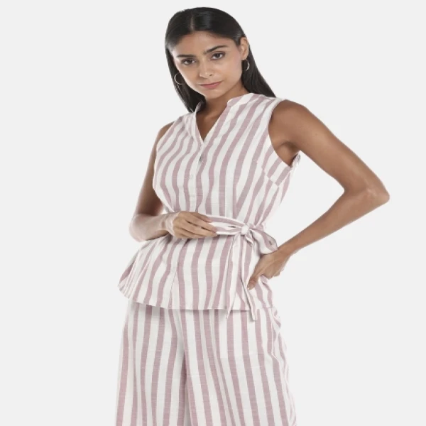 R&B Pink Woven Stripe Self Tie Top