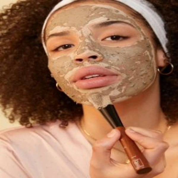 1. Scoop an even layer of charcoal clay mask onto skin with your fingertips.