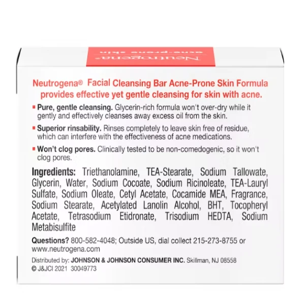 Neutrogena® Glycerin Soap Bar for Acne-Prone Skin, Dye-Free, Non-Comedogenic