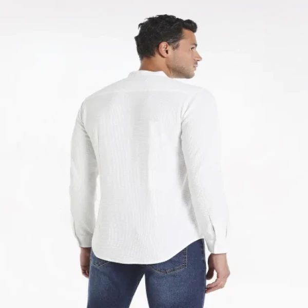 Solid Knit Shirt with Mandarin Collar and Long Sleeves