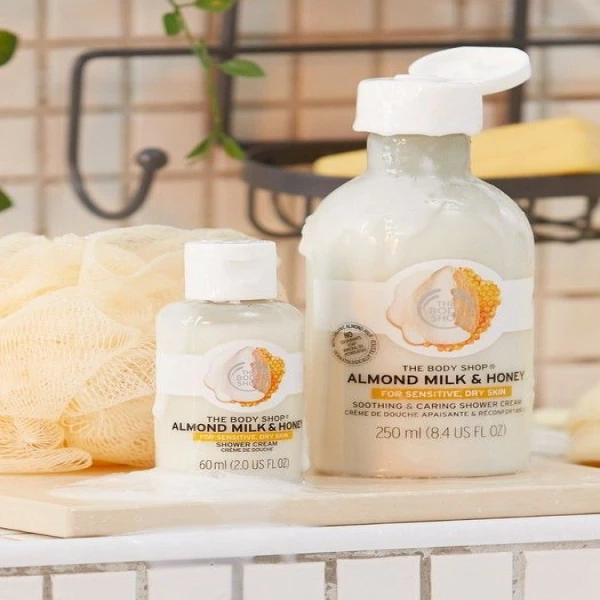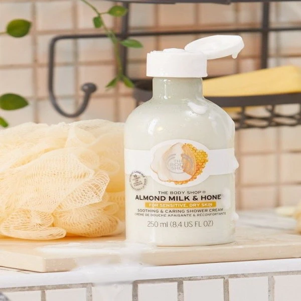 Sweet and sour. Sugar and spice. Almond milk and honey. Some things are just better together. That's why we created our Almond Milk & Honey Soothing & Caring Shower Cream, a luxurious combination of creamy, nutty almond milk and sweet, soft honey for a formula that helps to soothe your skin as you cleanse the day away. It's a tantalising little treat for dry sensitive skin types too. Our almond milk shower cream is specially formulated to care for your skin's natural moisture barrier whilst giving dirt and grime the heave-ho. In other words: it's an ultra-gentle formula that won’t make your skin feel like it's been stripped of precious moisture. Instead, you’ll find squeaky clean skin that feels smooth and nourished and smells heavenly with its sweet, fresh aroma. There's a reason this milky little bottle stands out in T he Body Shop's Shower Cream range. Not only does the name alone sound perfectly indulgent but it's also enriched with organic almond milk and honey. Together with these nature-inspired ingredients, our formula is the perfect shower cream for dry skin.