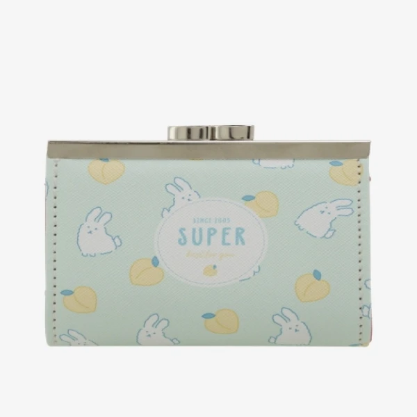 Pebble textured genuine leather upper dual compartments with kiss lock closure multiple slip-in card slots tri-fold construct with press stud closure