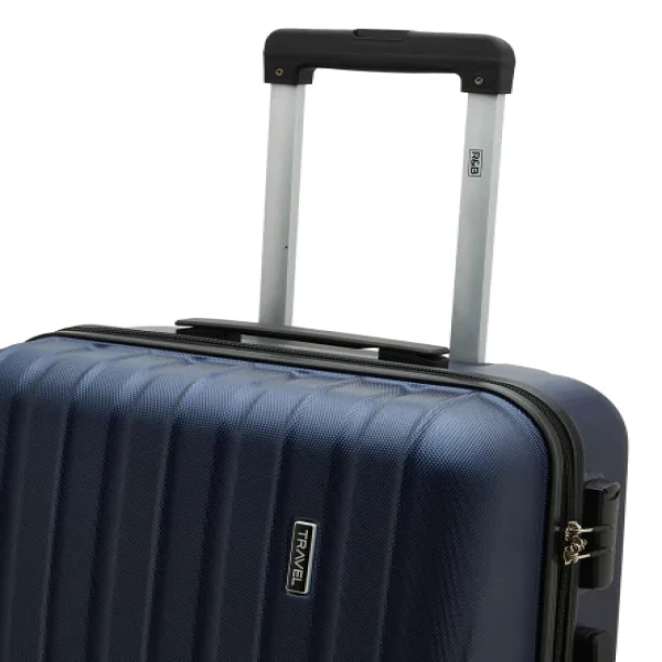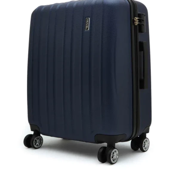 Carry all your belongings in style and with ease in this navy blue textured trolley suitcase for your next vacation. This hard case features a hard body with a retractable handle, side lock and four wheels that will make it easy to move around.