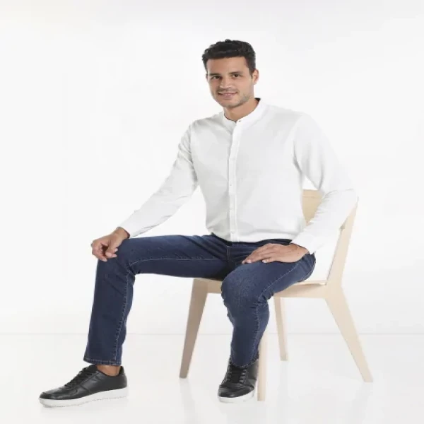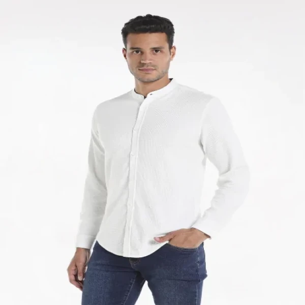 Solid Knit Shirt with Mandarin Collar and Long Sleeves