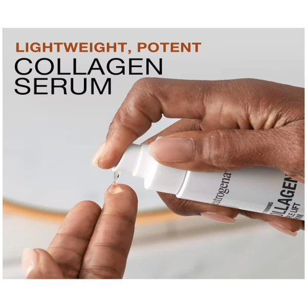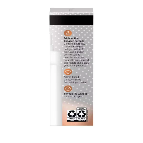 Neutrogena Rapid Firming™ Collagen Triple Lift Face Serum hydrates, smooths and visibly firms skin to restore a contoured-looking and youthful appearance. This daily face serum delivers within skin's surface to smooth and reveal a lifted look, and visibly firmer and more contoured skin over time. Its triple action collagen formula combines pure low molecular weight collagen with AHP amino acids and an amino sugar to complement skin’s natural firming support and restore skin’s taut, youthful appearance.