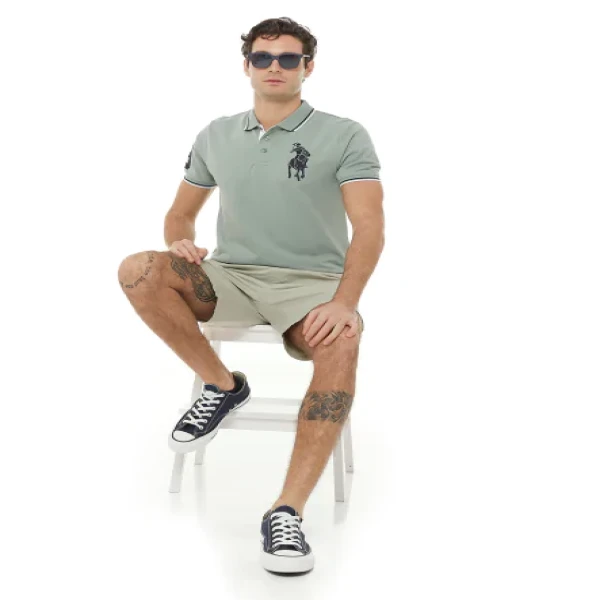 Embroidery Detail T-Shirt with Polo Collar and Short Sleeves