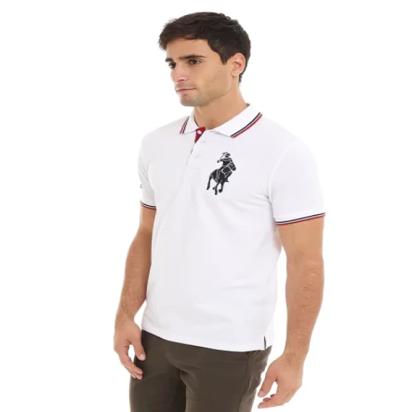 Logo Embroidered T-Shirt with Polo Collar and Short Sleeves