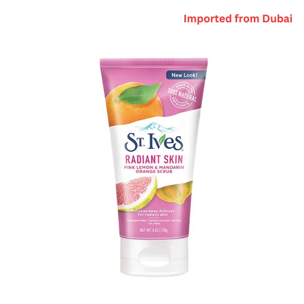 • St. Ives Radiant Skin Pink Lemon and Mandarin Orange Face Scrub is a delicious, citrusy scrub that polishes away dryness and reveals irresistibly radiant skin