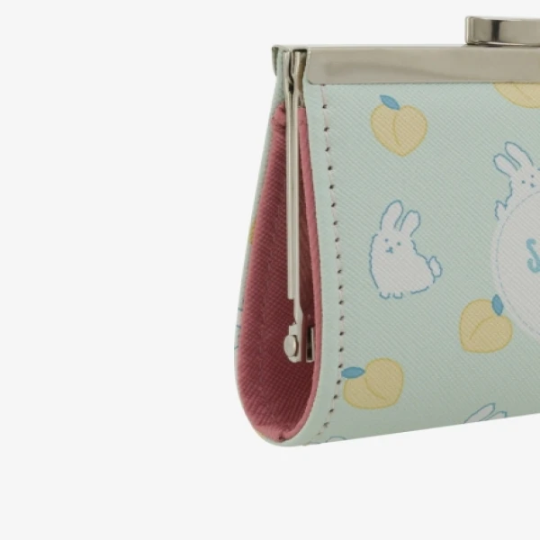 Pebble textured genuine leather upper dual compartments with kiss lock closure multiple slip-in card slots tri-fold construct with press stud closure